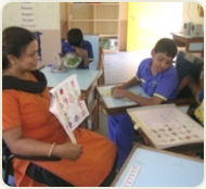 The speech therapist works in the area of development of speech, language and communication skills. They work in developing vegetative skills of chewing and swallowing, and correct eating and drinking patterns. They develop different modes of communication aided or unaided; alternate or augmentative communication, tailored to meet the child's communication and educational needs.